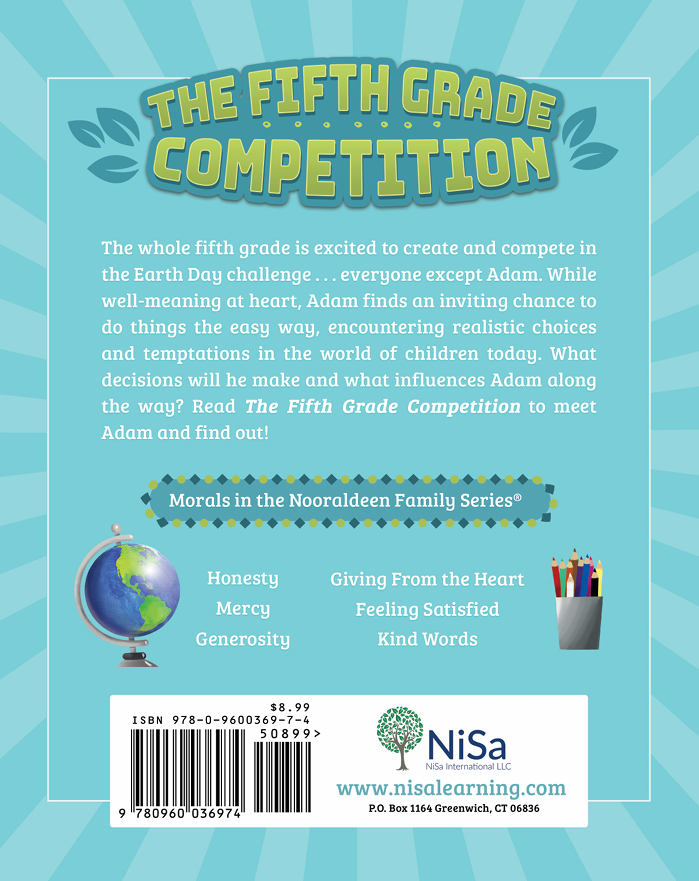 This is the second story in the Nooraldeen Family Series, entertaining, modern Islamic morality tales for children. The stories focus on Sara and Adam, and their loving parents, Mona and Bassel, and include a variety of other multicultural characters from among friends, family, and community members. The tales teach basic morals through entertaining stories that incorporate modern topics and challenges children face today. The Fifth Grade Competition discusses the importance of living an honest life and how honesty impacts ourselves and others.